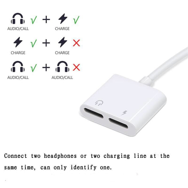 2 in 1 Adapter For iPhone 8/7/7 Plus Charging+Audio Cable